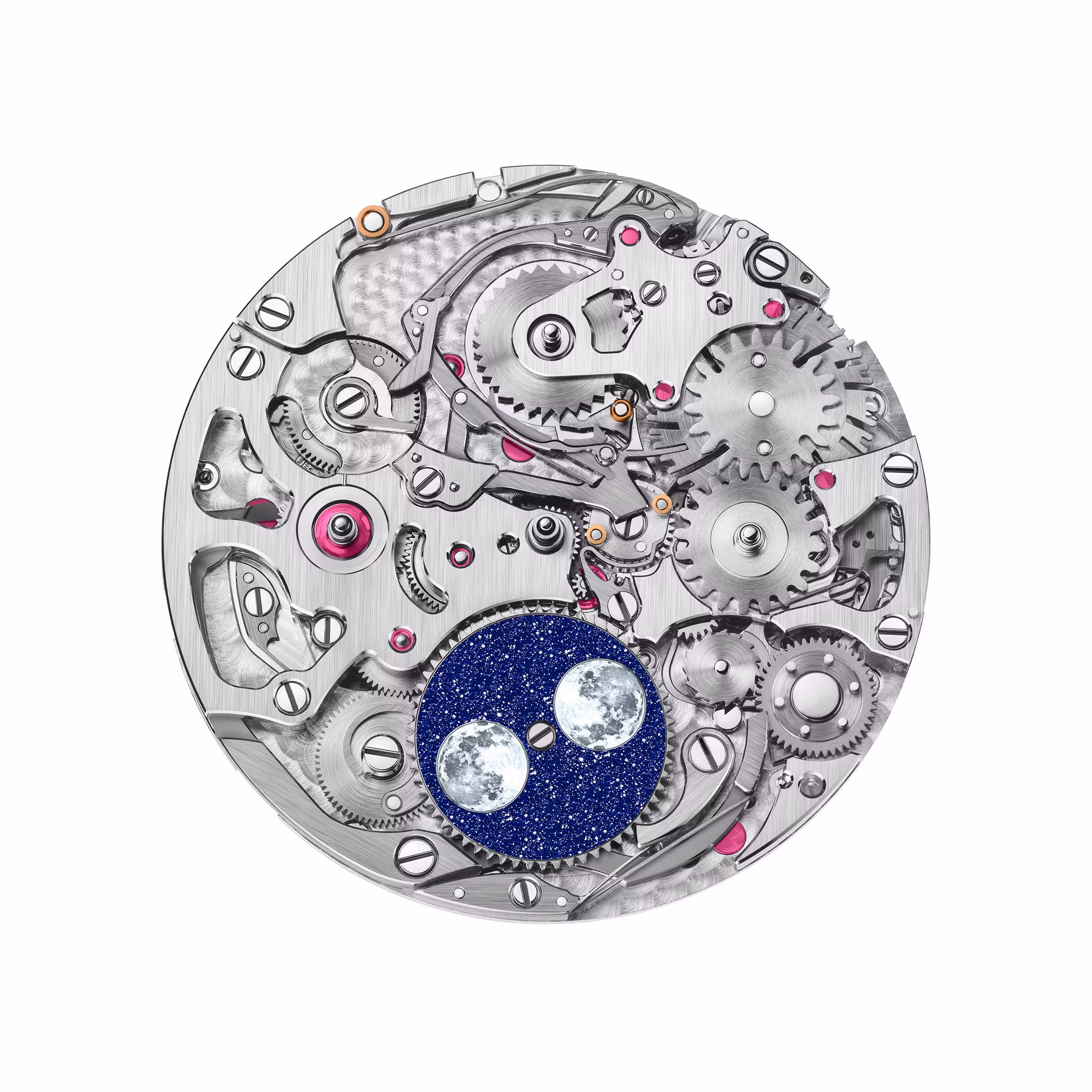 - Materiale: Este disponibil în oțel inoxidabil, cu un cadran “Grand Tapisserie” de un albastru deschis, sau în aur roz de 18k, cu un cadran bej cu aceeași textură.